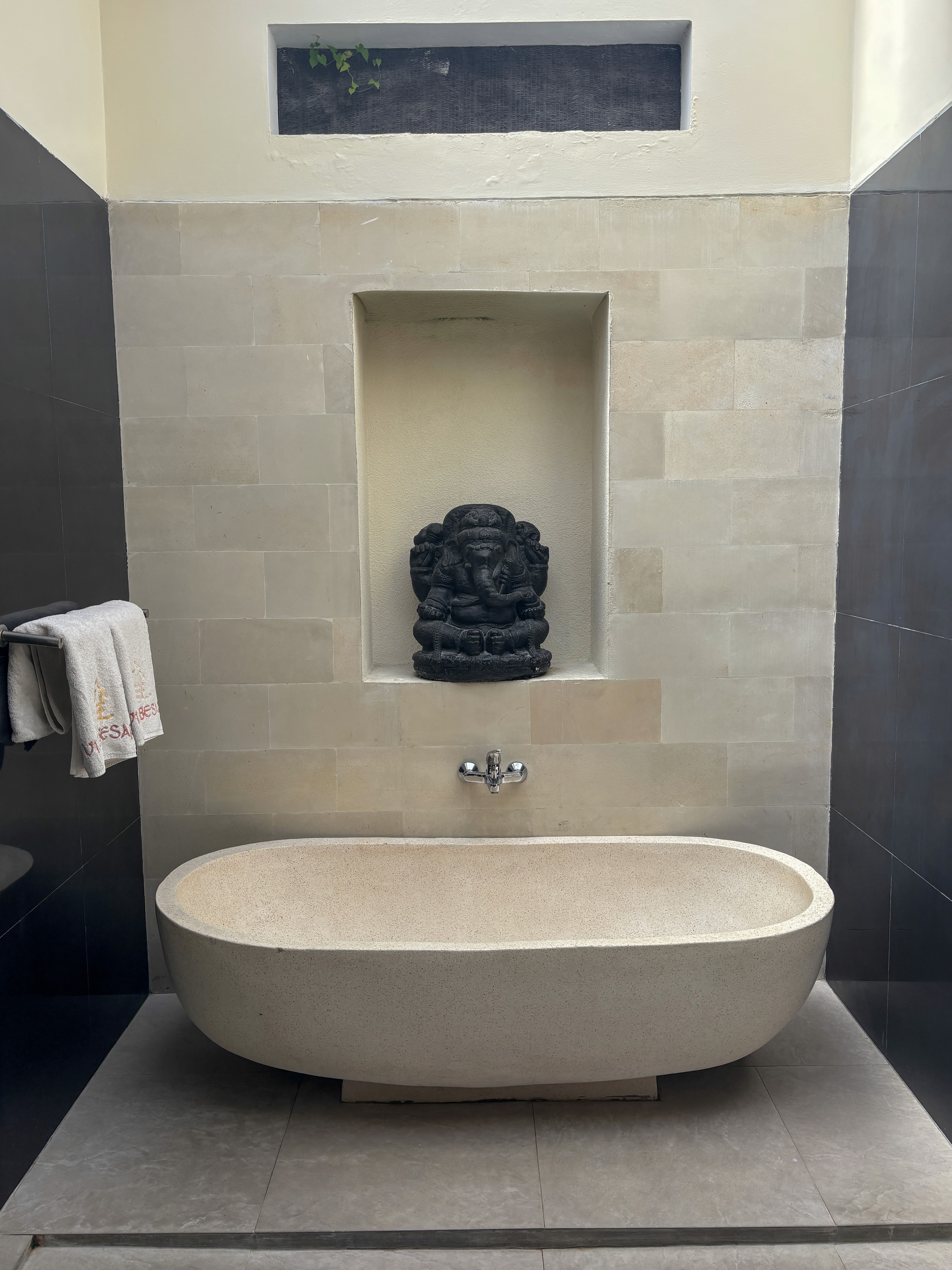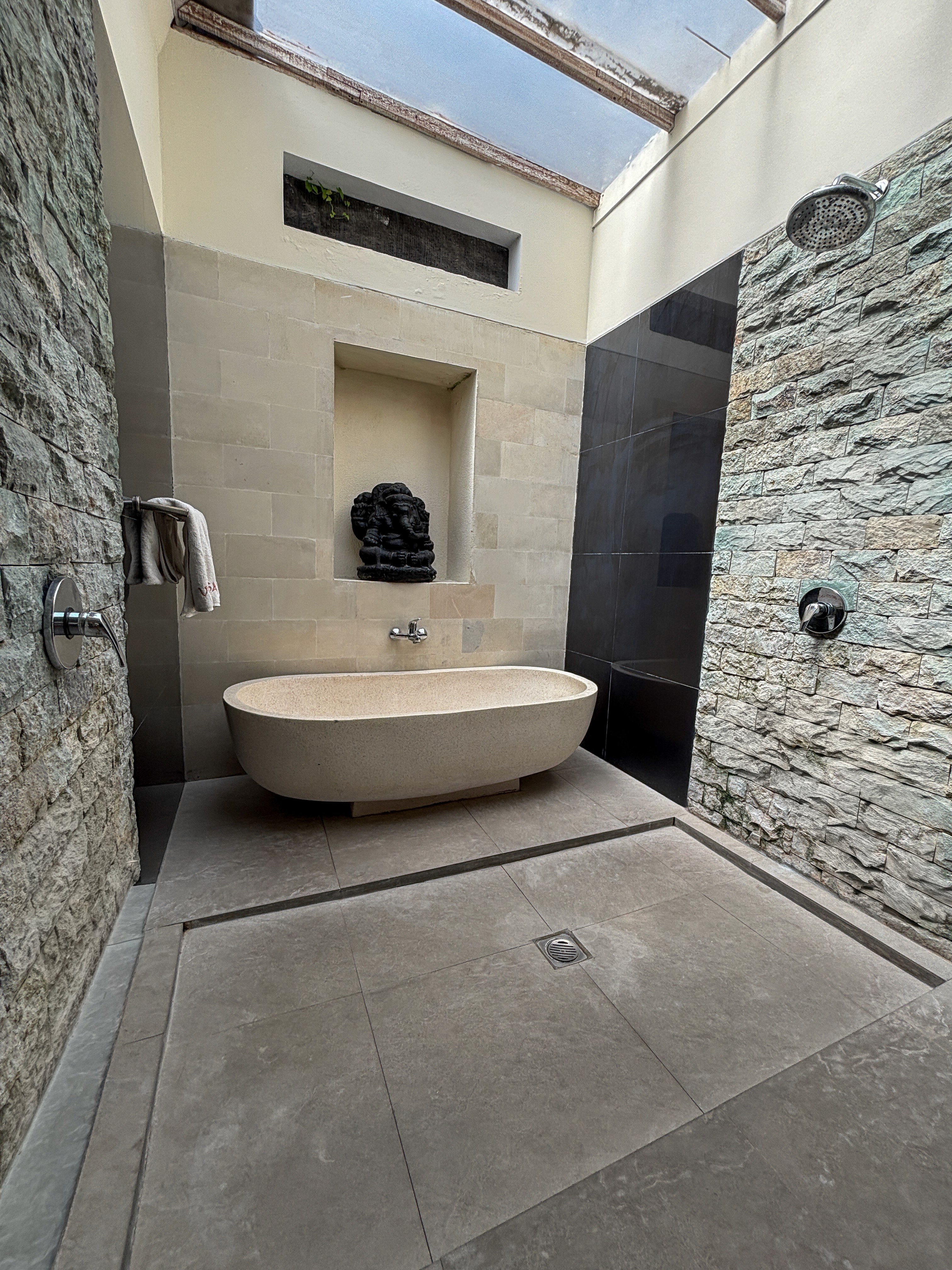 Large ensuite with freestanding Stone Bath