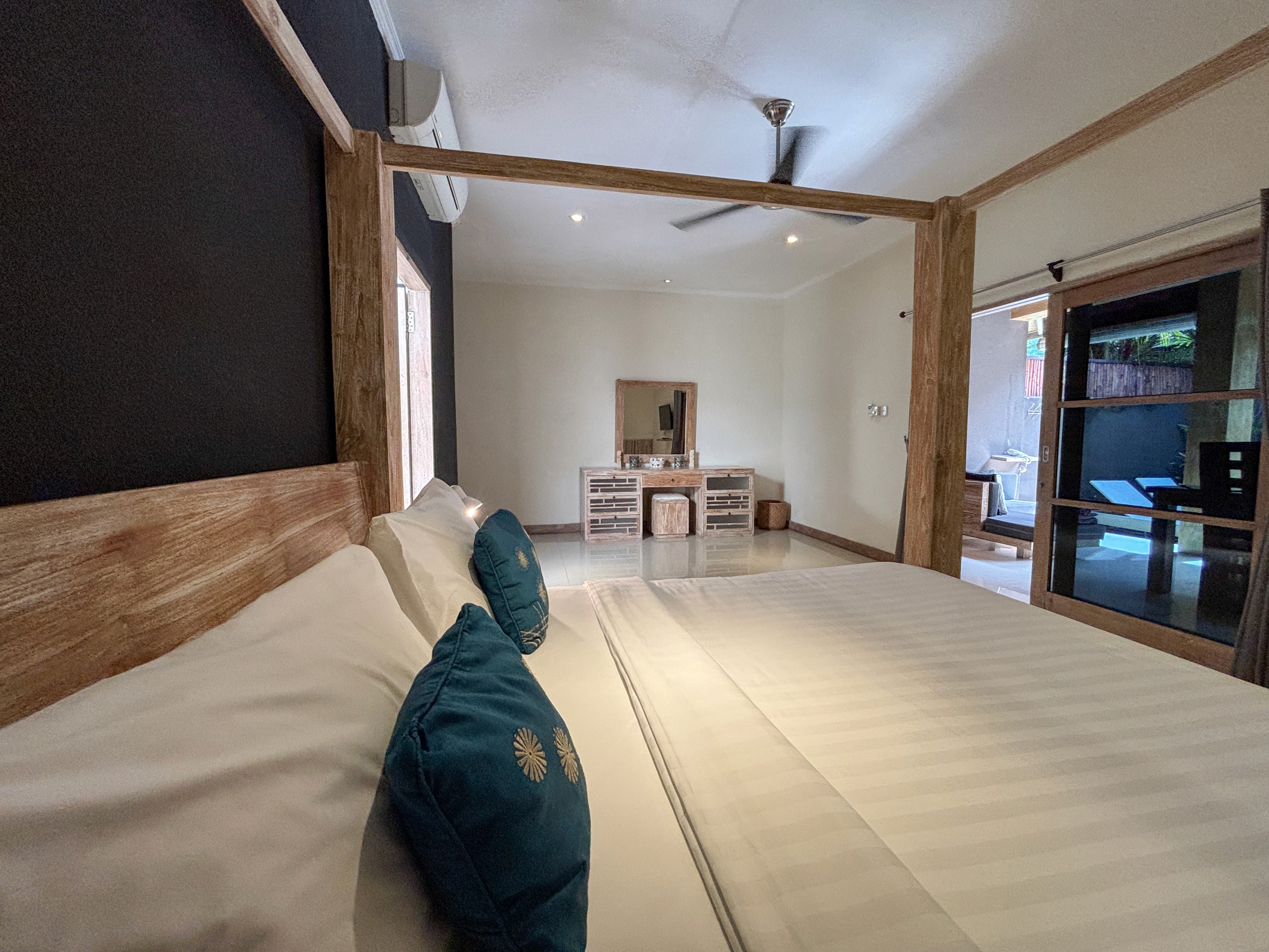 This villa is ideal for couples seeking some peace and quiet with a massive air-conditioned bedroom and large ensuite and bath with an intimate living overlooking your own private pool equipped with sun loungers to laze in the sun.