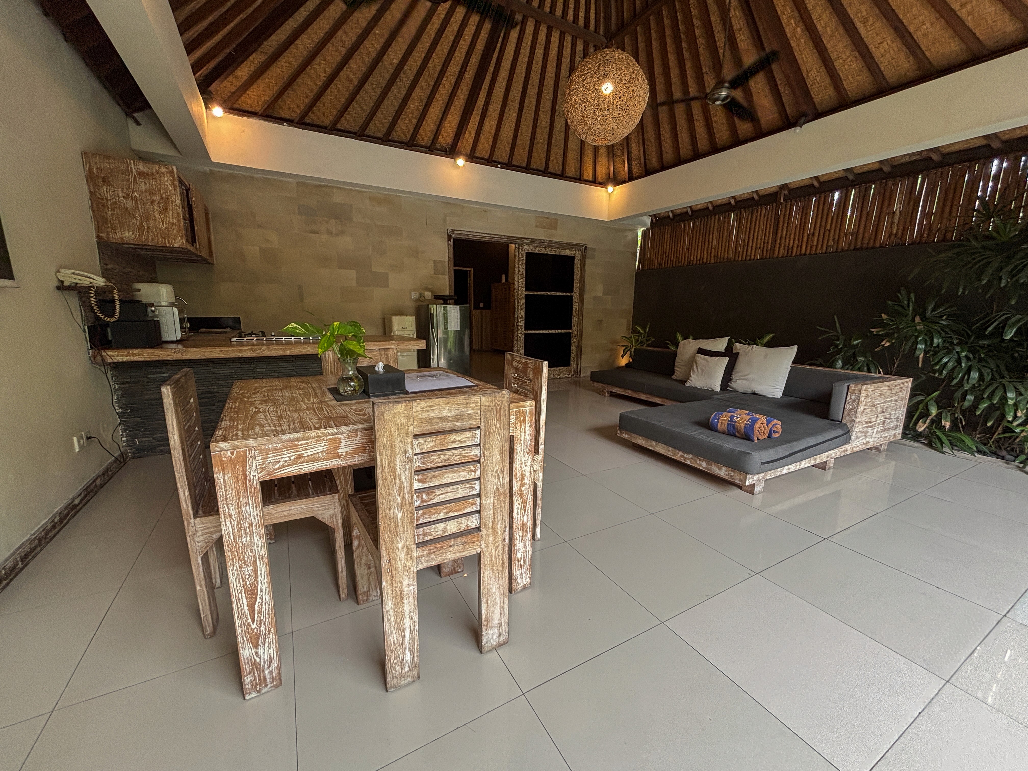 This private villa is stunning from its spacious rooms to its high vaulted ceiling. It includes a private pool with sun lounges bordered by fresh greenery. You’ll love the service with this stay too. As you relax in luxurious comfort, you won’t have to lift a finger. We’ll address everything you want, from airport transfers, cooking, cleaning, even providing a private driver to take you around to explore your surroundings.
