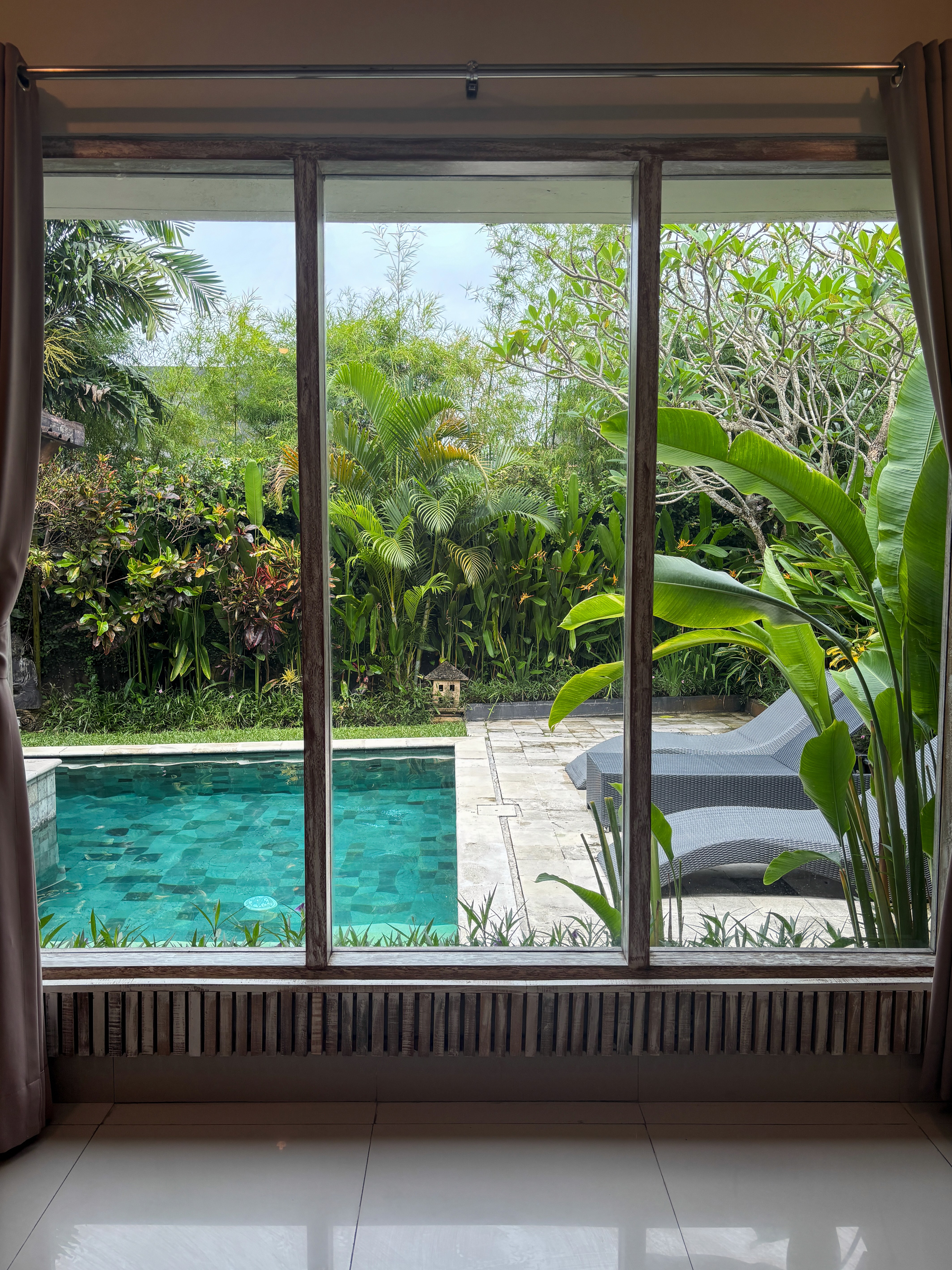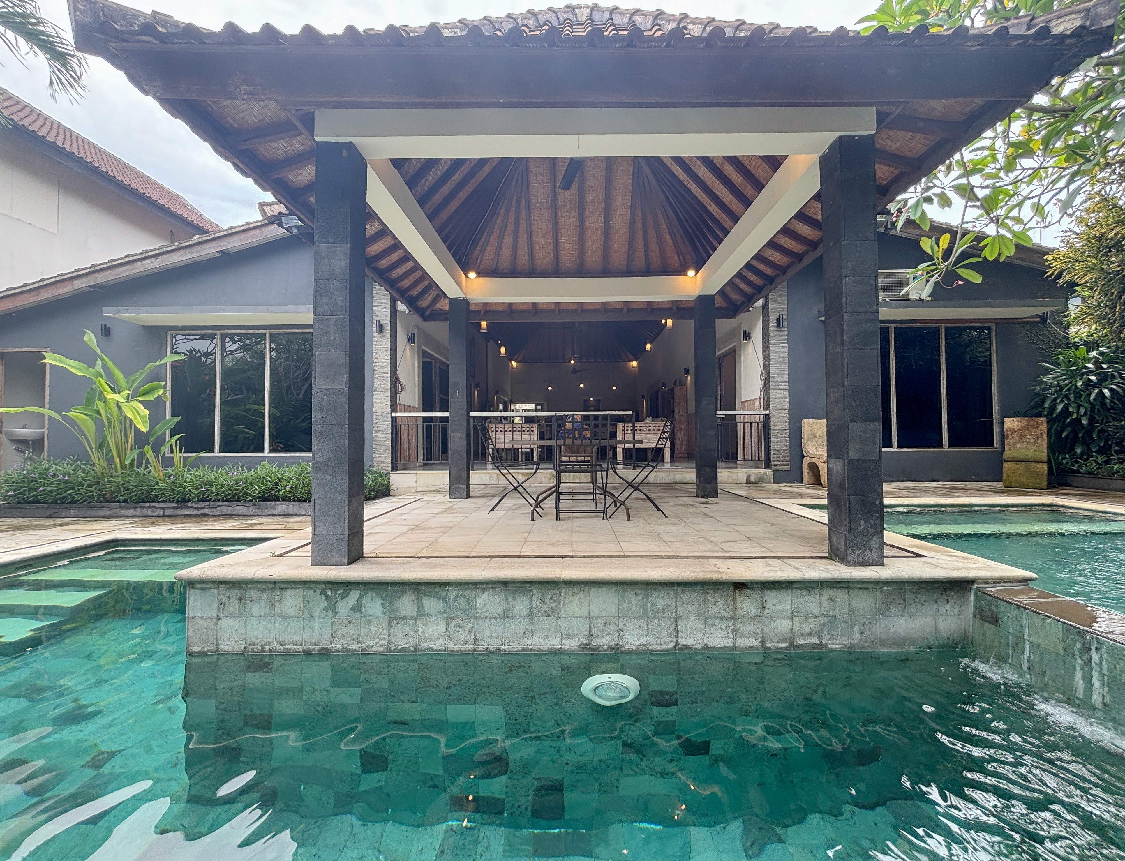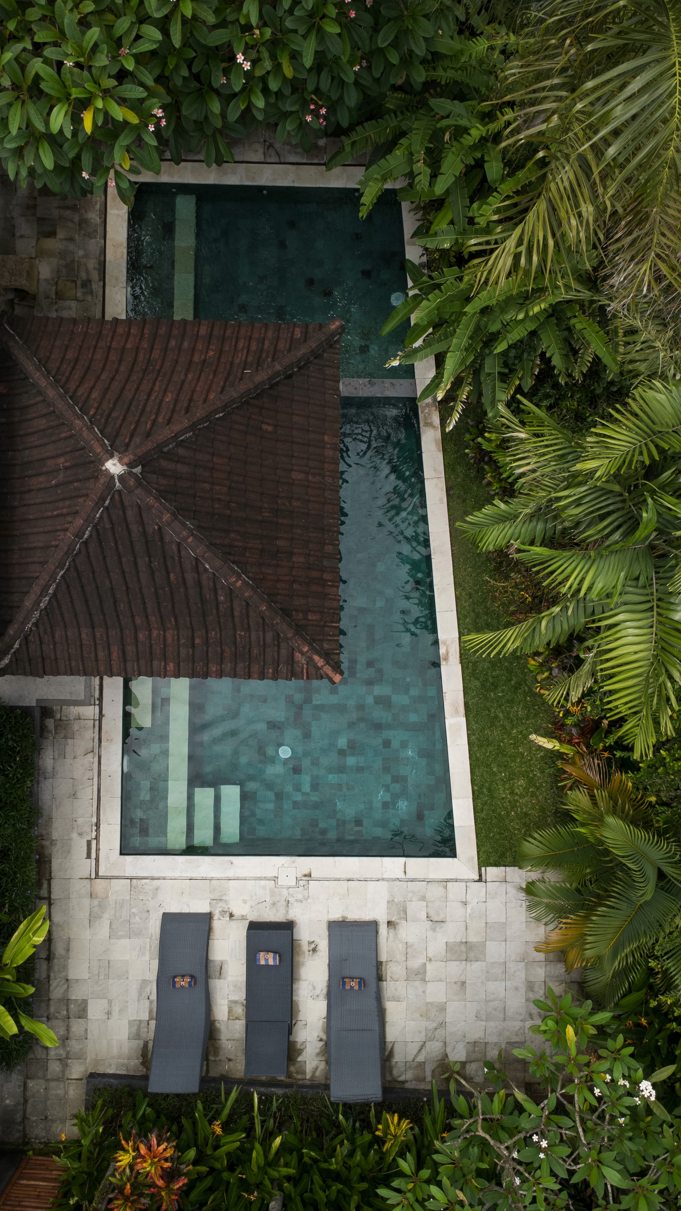 The villa is beautifully appointed throughout, from the elegant bathrooms and western kitchen to the tropical garden with wraparound pool and Balinese gazebo. The minute you step into the wide, welcoming foyer, your getaway begins. Relax and gather your thoughts in the light-filled central room, where plush day beds encourage you to take a load off – perhaps even kick back with some cocktails together. Love the feel of the cool tiles underfoot as you make your way to the private pool gazebo.