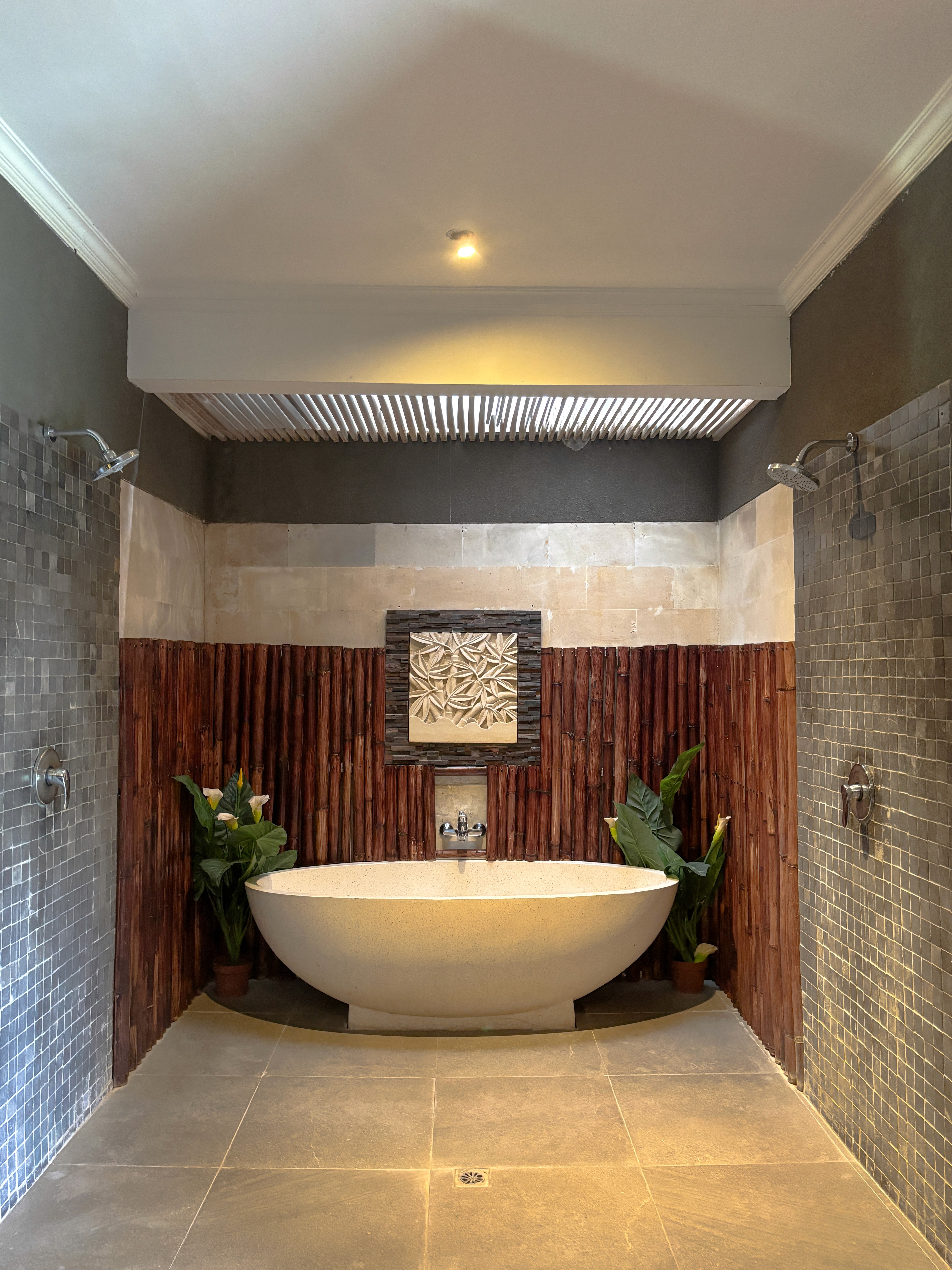Porcelain tiles throughout